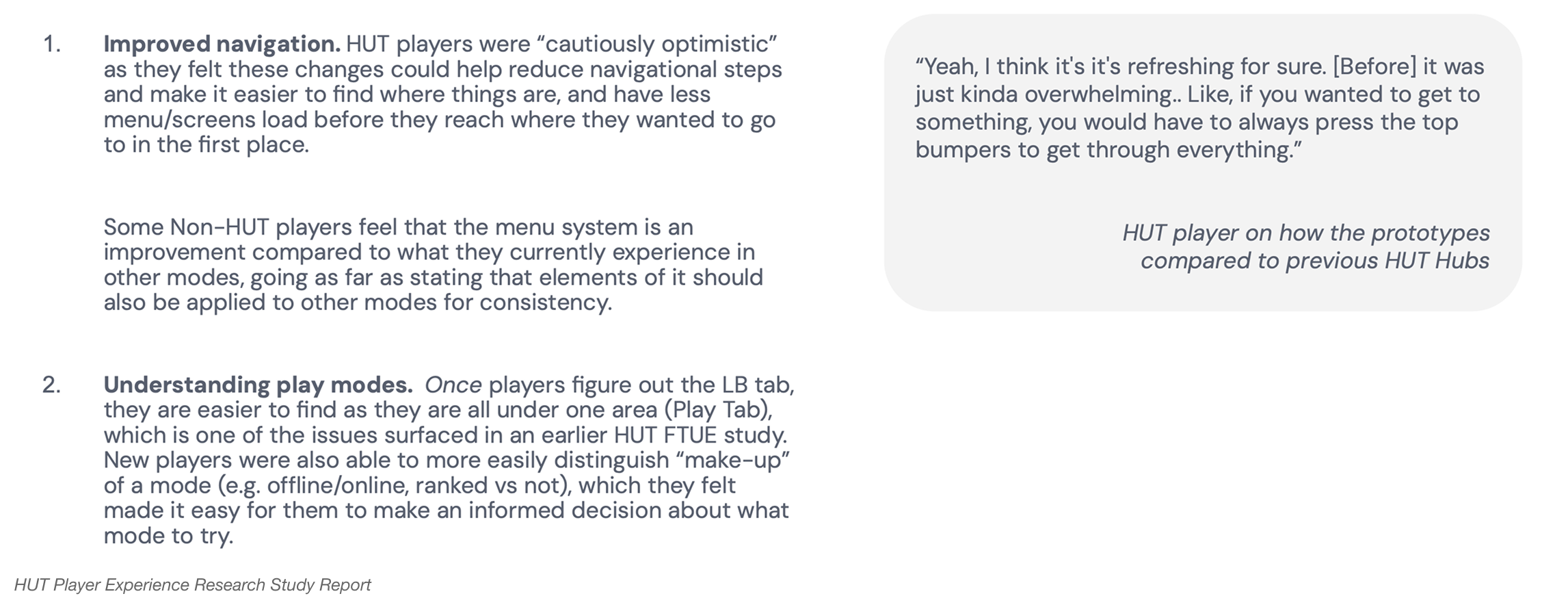 This redesign represents an important first step, and we see it as one of many building blocks that will continue shaping and elevating the overall Player Experience in HUT moving forward.