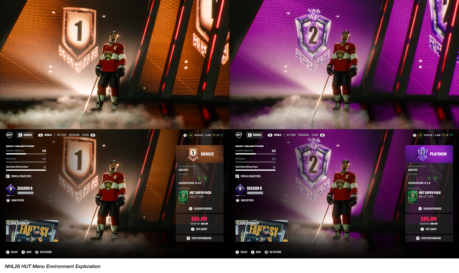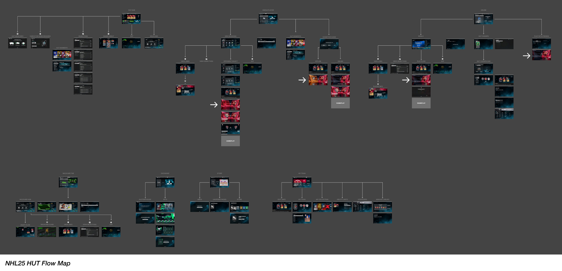 My team was part of an extensive project to redesign and implement a new menu and navigation system for the Hockey Ultimate Team (HUT) game mode in the NHL26. The goal of this project was to reimagine how we can deliver a refreshed and engaging player experience that can map to our product pillars for NHL26.