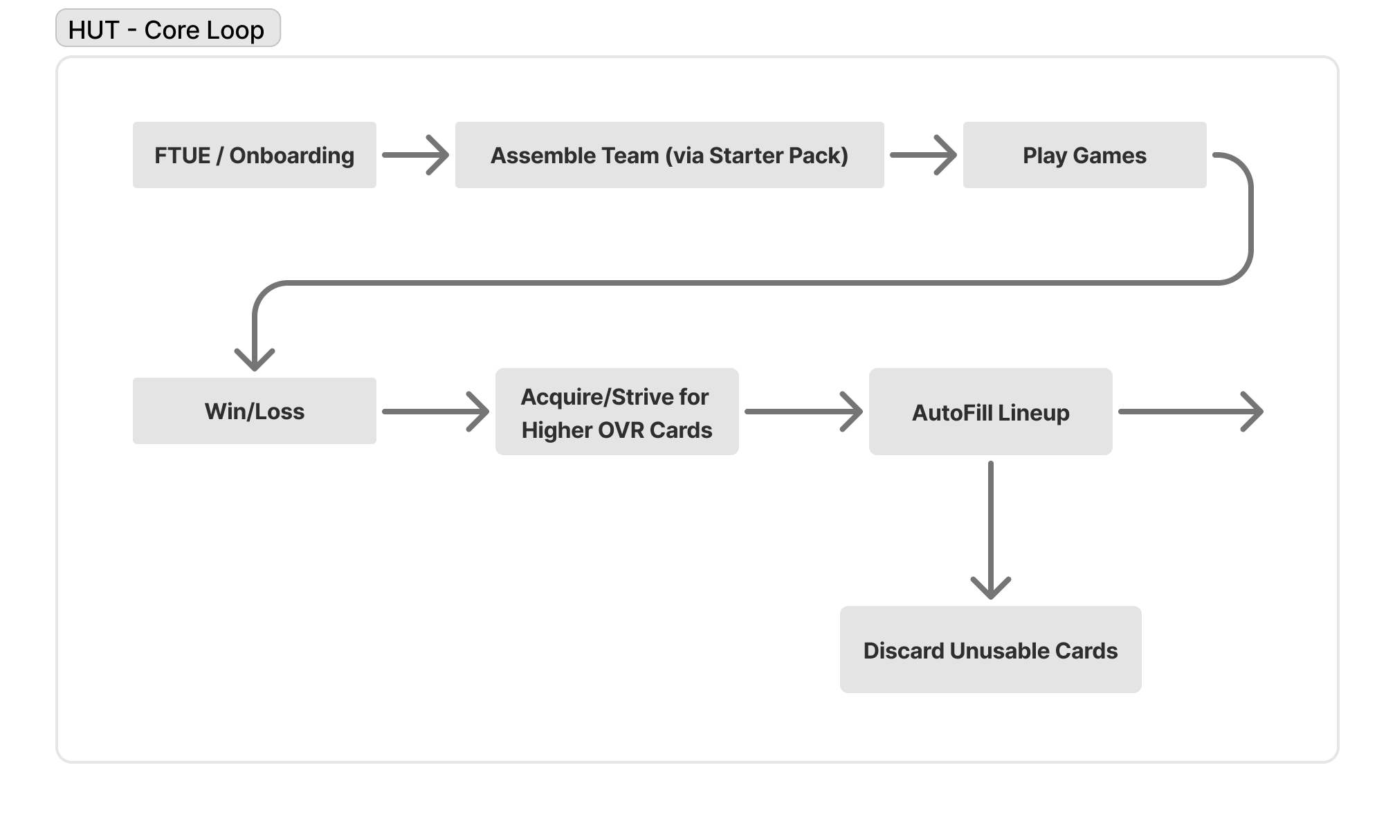 Our business had been struggling to sustain Core Player Engagement throughout its product life cycle. Research over the past several years suggested players quickly lose excitement and value in the cards they collect, especially regular or non-premium cards - leaving little incentive to develop them over time. This stems from a non-repeatable core loop: players enter the mode, play games, realize that standard cards offer limited impact on performance, and ultimately shift their focus toward pursuing higher-OVR cards through challenges or store purchases. As a result, user engagement becomes heavily dependent on chasing top-tier cards rather than finding ongoing utility in their broader collection.